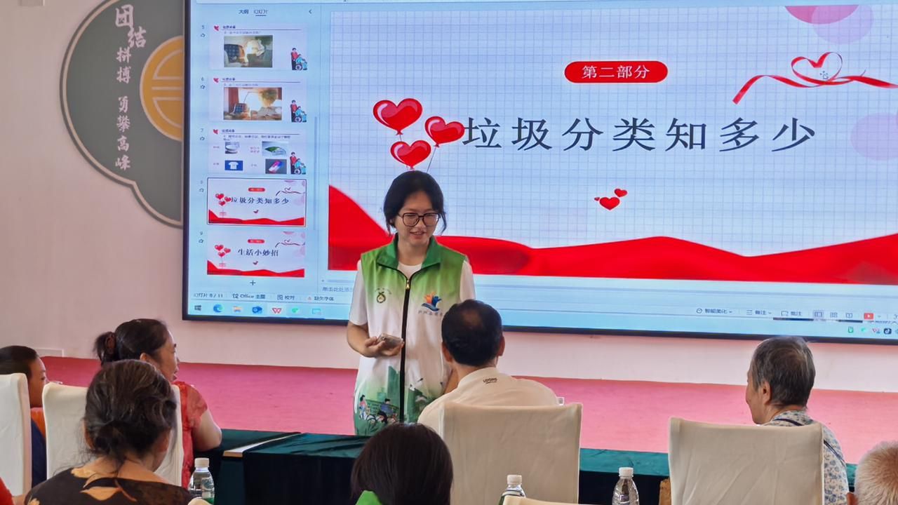 活动现场,队员们先以一段精心制作的动画短片开启培训。短片中,“可回收物小人”“厨余垃圾精灵”等卡通形象跃然屏幕,通过趣味互动演示了废纸、菜叶、废电池、过期药品等十余种常见垃圾的分类标准与投放要点,将抽象的分类规则转化为直观易懂的画面,让不同年龄层的村民都能快速理解。随后的互动问答环节,队员们结合当地生活场景设计问题,从“打碎的陶瓷碗属于哪类垃圾”到“玉米皮是否为厨余垃圾”,覆盖日常高频分类场景。村民们踊跃举手抢答,答对者可领取印着环保标语的卡通笔记本、可降解垃圾袋等奖品,小小的奖励不仅调动了参与热情,更让大家在轻松氛围中加深了对分类知识的记忆。
