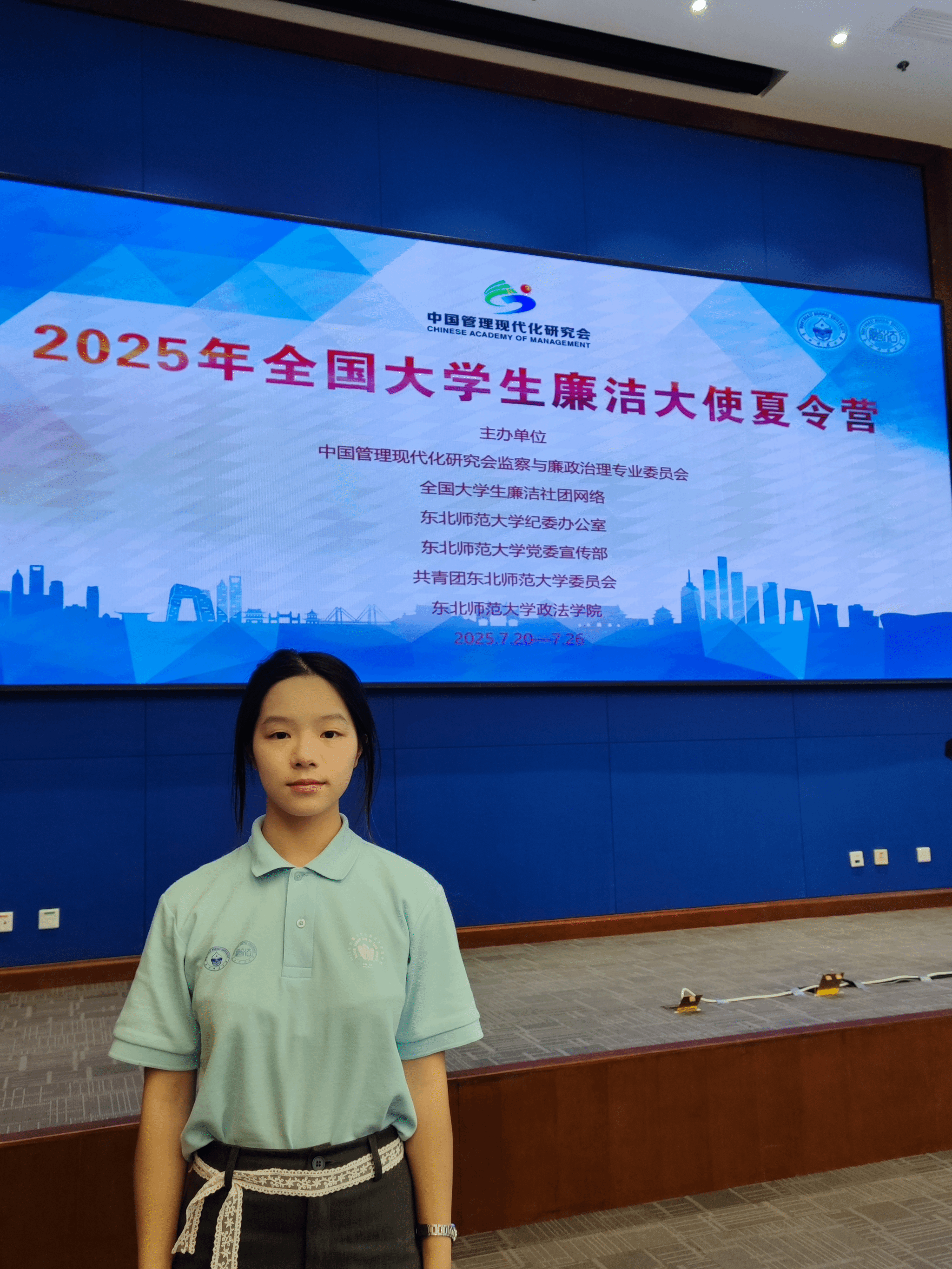 近日,由中国管理现代化研究会监察与廉政治理专业委员会(简称廉政学会)、全国大学生廉洁社团网络、东北师范大学联合主办的“2025年全国大学生廉洁大使夏令营”在东北师范大学举办。南充校区2025年“全国大学生廉洁大使”刘瑜和青年传清廉学习社骨干方思语、蒲奕颖共三名同学受邀参加本次夏令营活动。