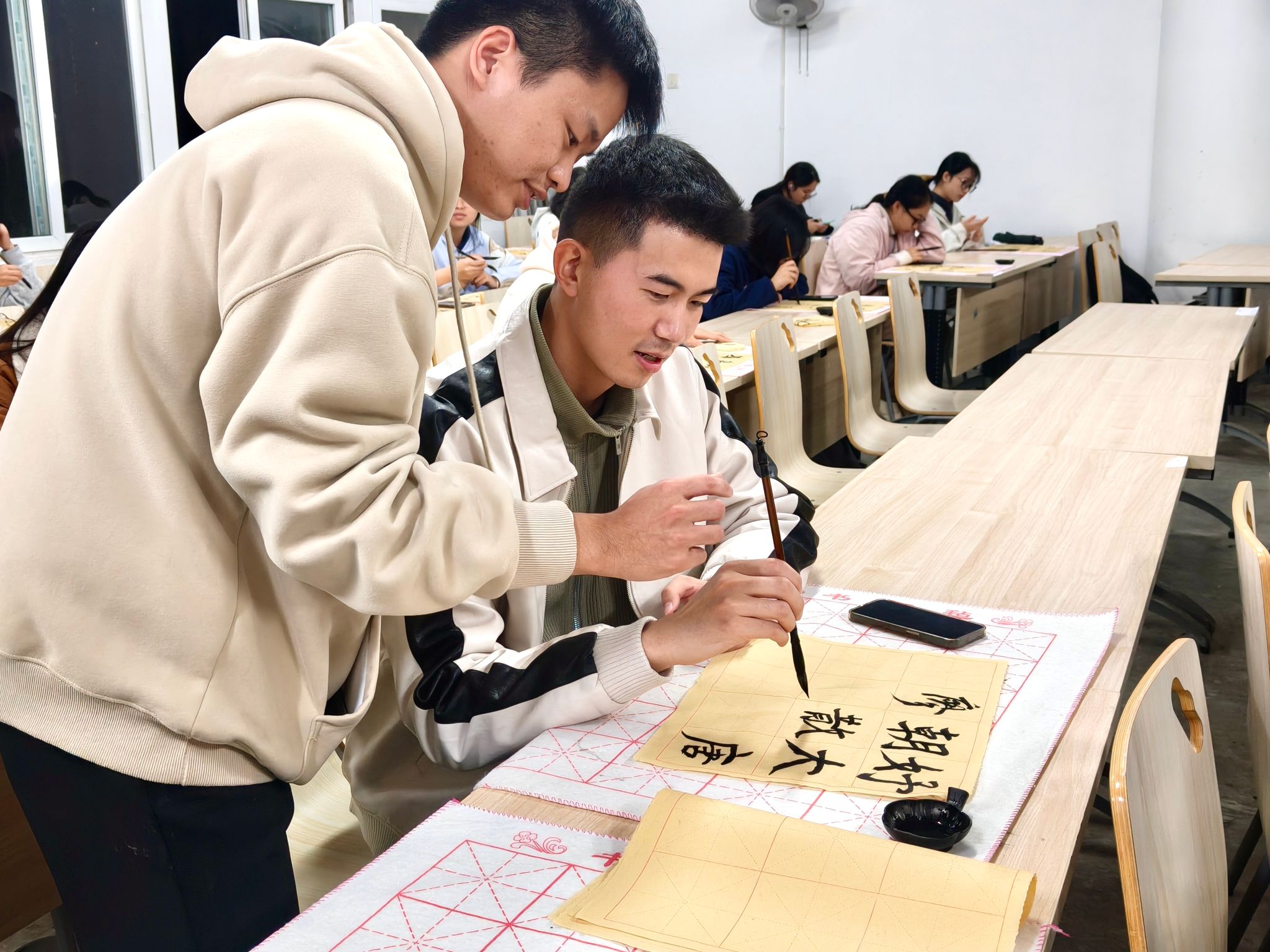 活动内容充实丰富,包含笔法基础知识讲解、基本笔法分类精讲、笔法组合应用及常见问题解决等环节。主讲人系统介绍了横、竖、撇、捺等基本笔法的特点与书写要领,通过实例演示笔画衔接时的笔势呼应关系,并针对常见书写问题提供专业指导。在实践练习环节,同学们在主讲人巡回指导下进行笔画和简单汉字书写,巩固所学知识。其中,特别设置的“书画接龙挑战”趣味活动,以小组接力创作的形式,既考验团队协作能力,又增强了活动的趣味性和参与度。