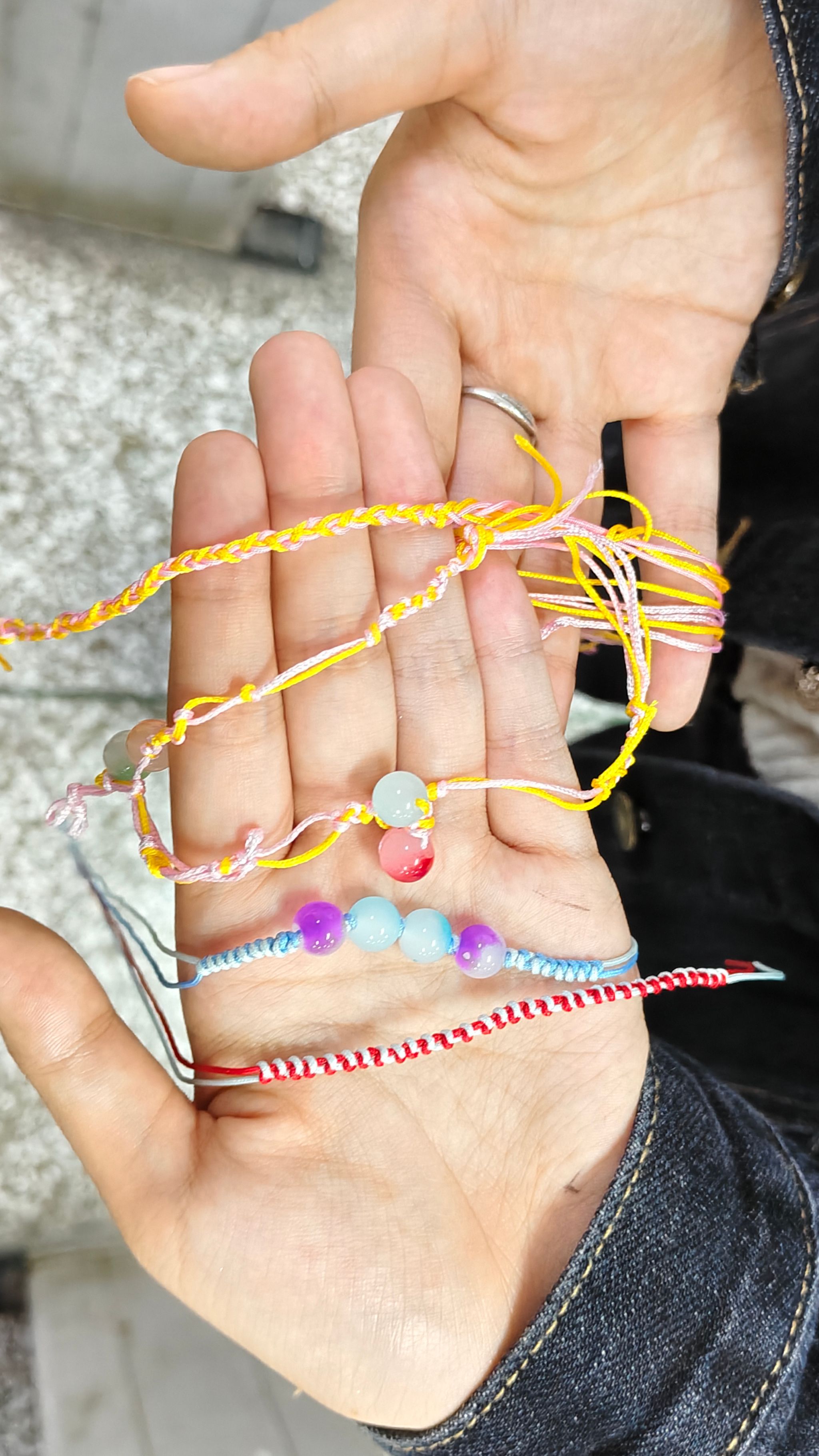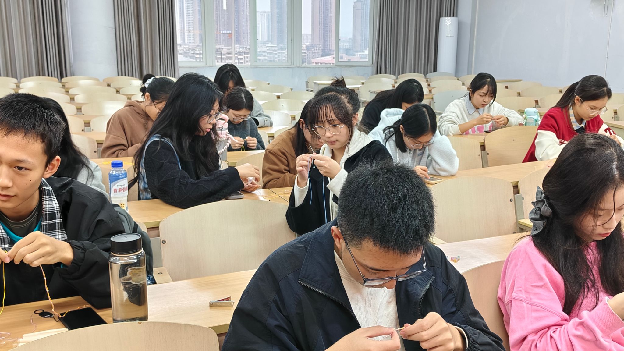 活动前,主讲人精心筹备教学PPT,梳理编织关键步骤与技巧;备齐多色编织绳、彩珠等材料,同时规整活动场地,为活动顺利开展筑牢基础。活动中,主讲人通过PPT讲解编法并现场演示,随后引导同学们自主创作。同学们遇到问题时,主讲人及时上前指导,纠正手法;同学们也相互交流经验,在相互合作中推进手链编织。收尾阶段,主讲人协助大家完成手链收尾打结,同时整理剩余材料,收集活动反馈,各色精致手链陆续完工,活动画上圆满句号。