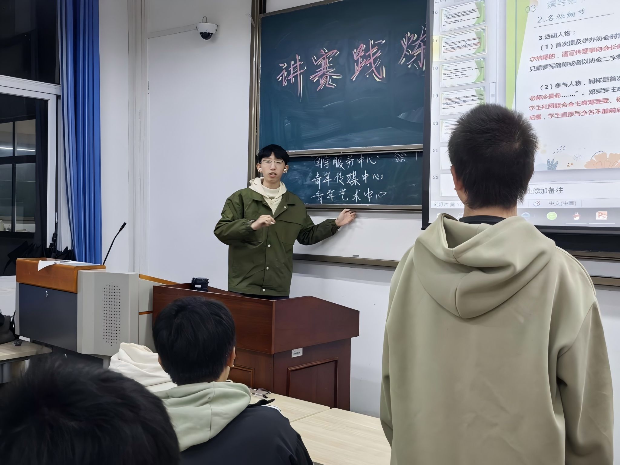 为贯彻落实校区“讲赛践炼”专项工作部署,提升校区学子的综合文化素养,11月14日晚,校区社团联棋云舍于第二教学楼206教室顺利举办“活动新闻稿撰写教学”第三次课程,活动共计吸引20位同学参与。