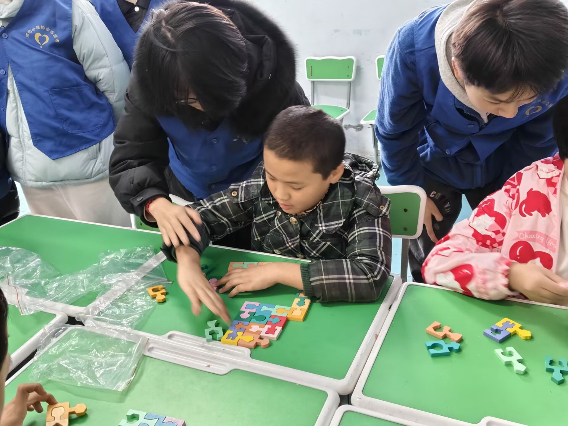 为践行社会责任,传递人间温情,近日,校区社团联阳光心理协会组织15名志愿者走进市特殊教育学校,开展“情暖童心,爱伴成长”残障儿童关爱志愿活动,以跳格子、搭积木等趣味互动,为孩子们送去专属欢乐与温暖。