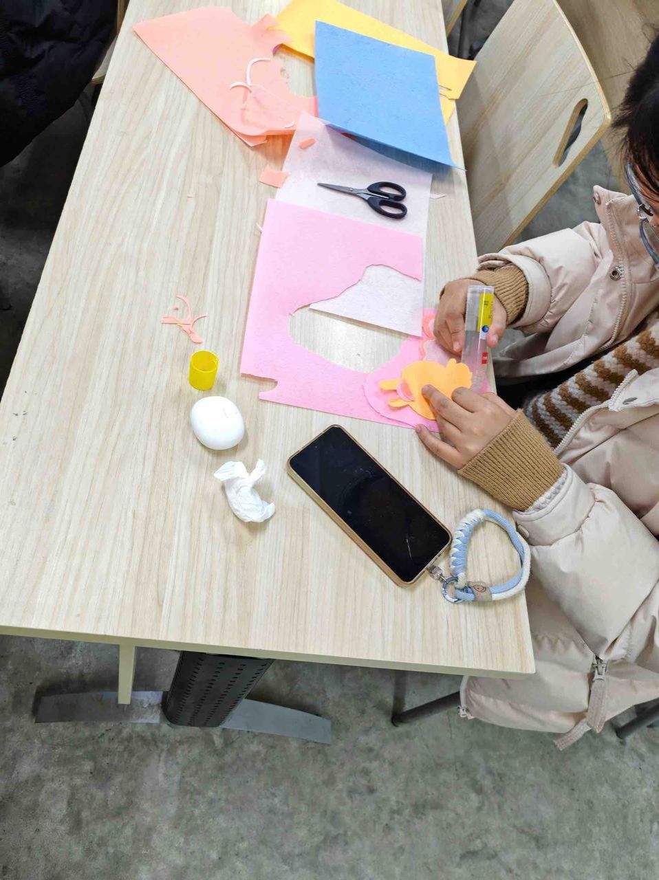 课程伊始,主讲人详细讲解裁剪对齐、基础针法、填充塑形等关键技巧,现场实操展示不织布挂件的制作流程,并耐心解答学员们的疑问。在实践环节中,学员们迅速投入创作,充分发挥想象力,通过图形勾勒、巧妙裁剪、创意拼接等方法,将平凡的不织布转化为形态各异的精美作品。创作过程中,大家互帮互助,围绕针法运用、造型设计等问题热烈探讨,在协作中共同进步。课程尾声,学员们踊跃展示成果,分享创作灵感与制作心得,氛围热烈。