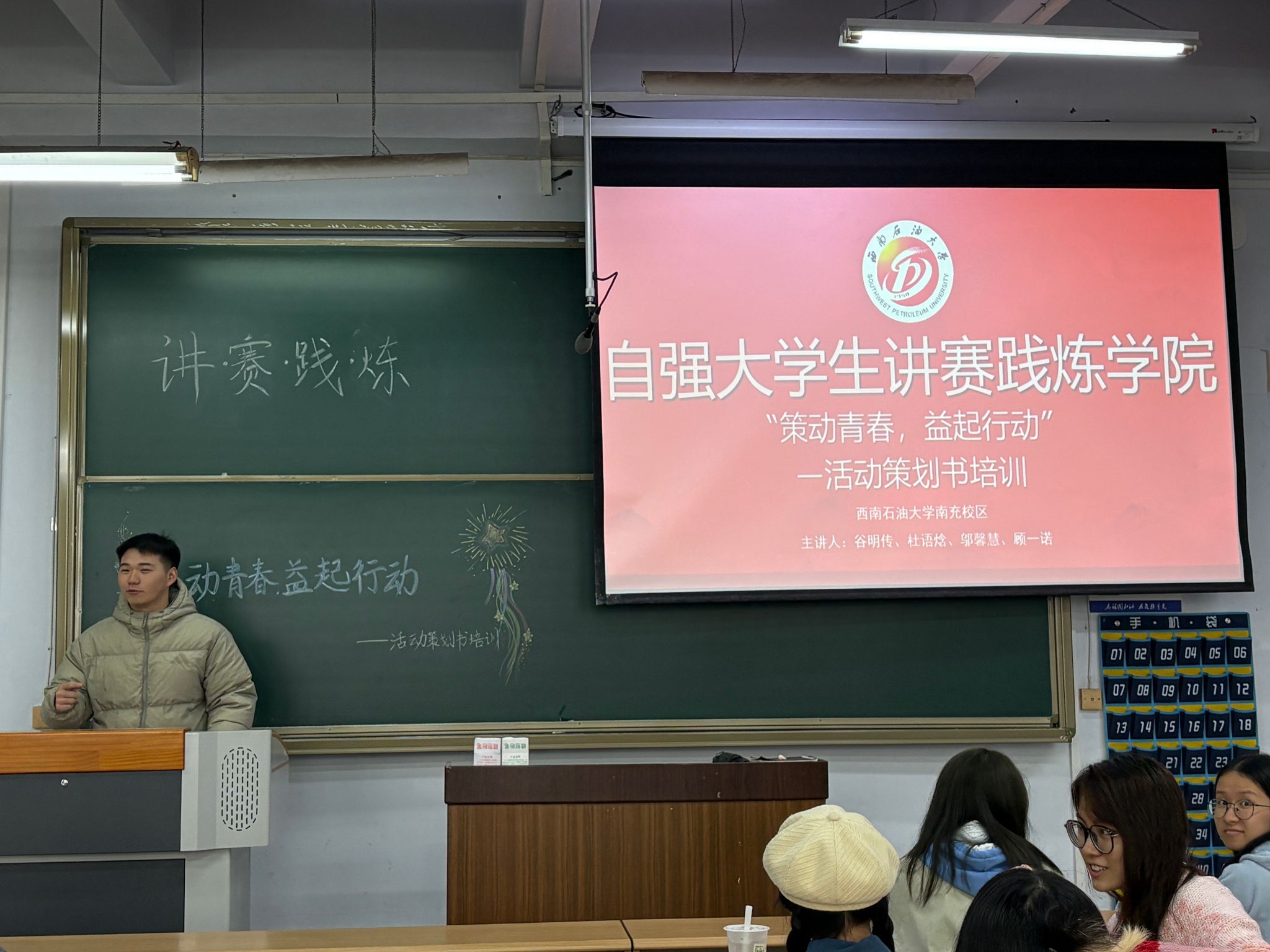 为帮助学生掌握活动策划书撰写方法,提升实践策划能力,保障各类活动高效有序推进,11月27日,校区自强大学生讲赛践炼学院举办的“策动青春,益起行动”第四期活动策划书培训在第四教学楼411教室圆满开展,培训由谷明传、杜语焓、邬馨慧、顾一诺担任主讲人。