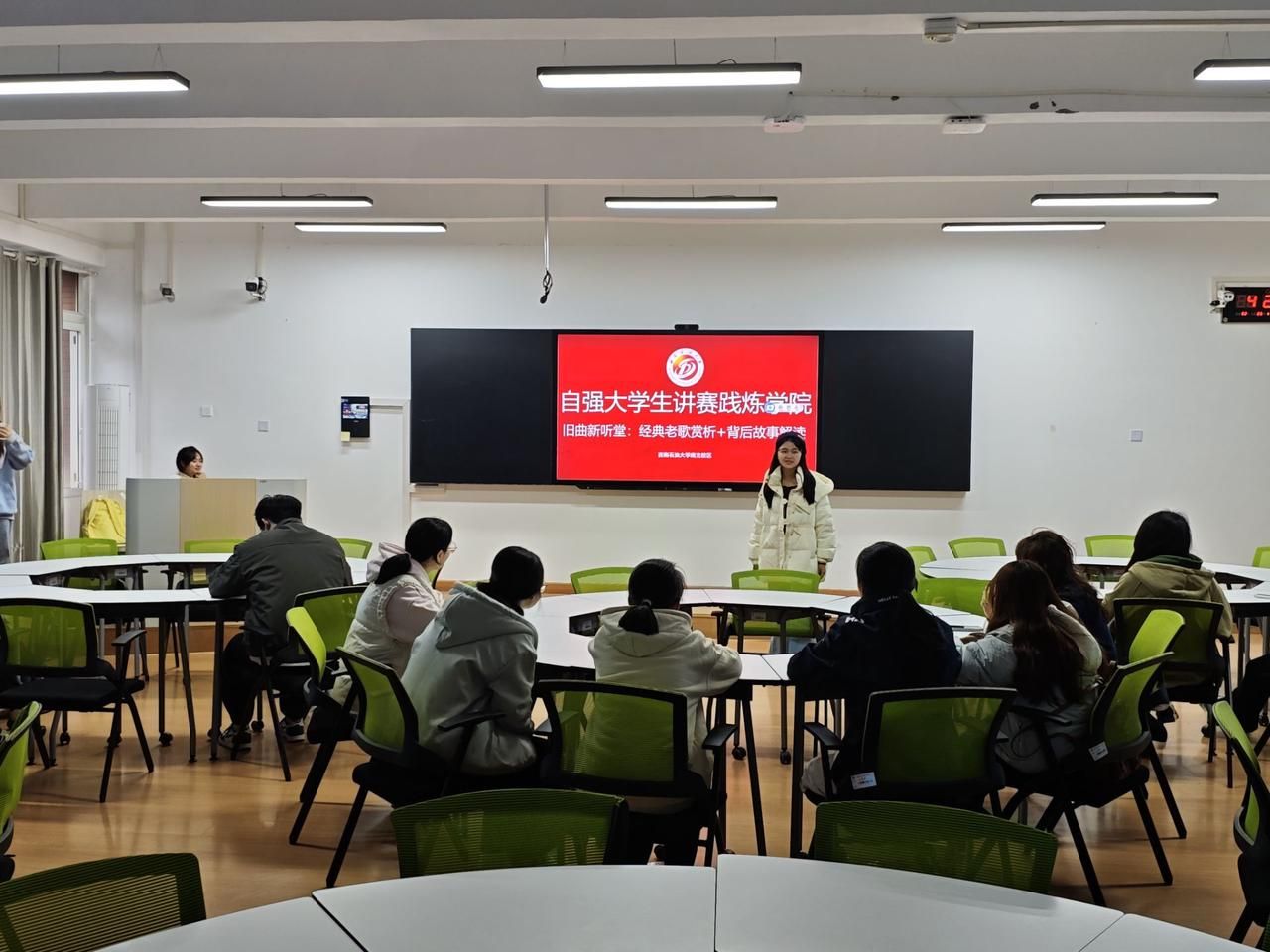 为提升学员对经典音乐的理解与审美能力,11月28日,“讲赛践炼”系列课程之旧曲新听堂:经典老歌赏析+背后故事解读在第四教学楼307教室顺利完成,共计21名学员参与。
