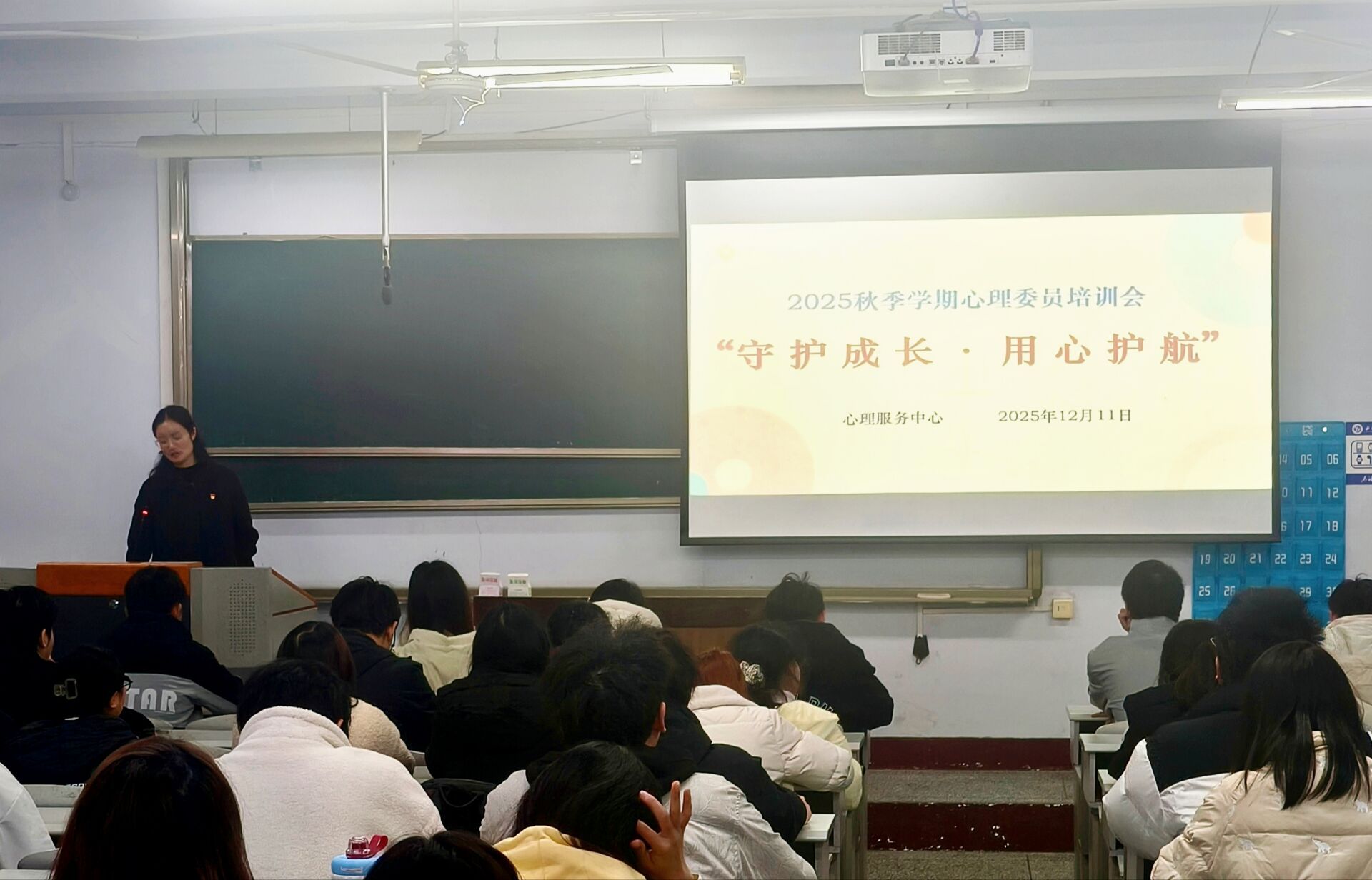 为进一步提升班级心理委员的专业能力,筑牢校区心理健康防护屏障,12月11日下午4:20至5:30,校区于4103教室开展2025年秋季学期心理委员培训会。本次培训由校区心理服务中心专职心理教师江老师主讲,校区全体心理委员齐聚一堂参与学习。