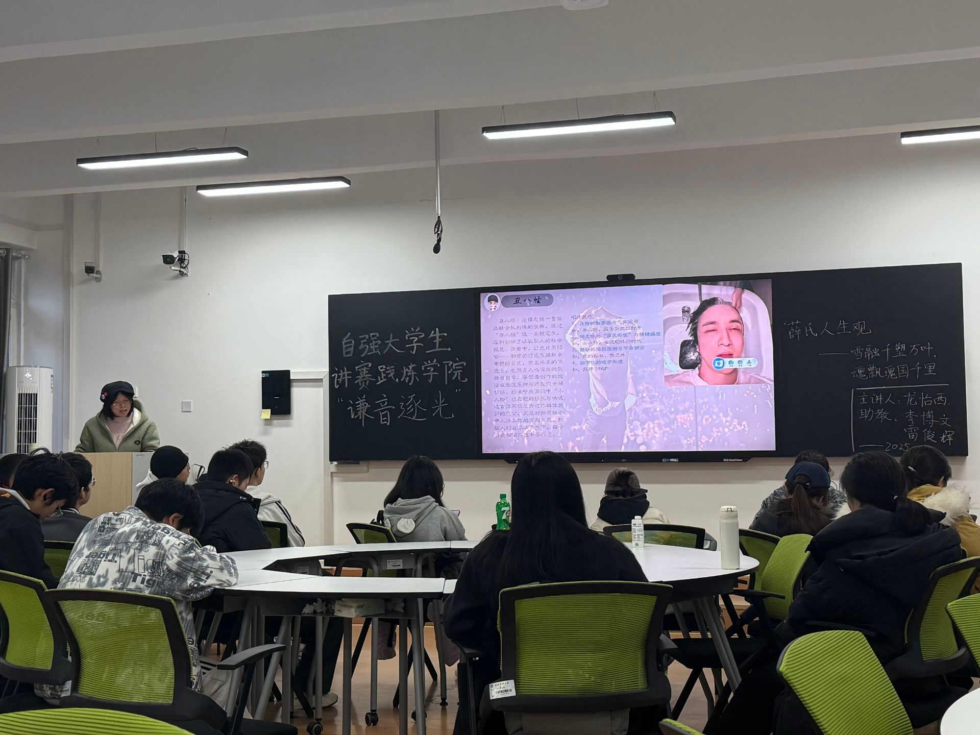 近日,“谦音逐光——歌曲里的人生观”主题分享活动在第四教学楼4207教室温情落幕。本次活动以音乐为媒,通过解析《动物世界》《认真的雪》《骆驼》《违背的青春》四首经典曲目,带领现场观众探索歌手音乐作品中蕴含的人生哲思,引发对成长、理想与现实的深度共鸣。