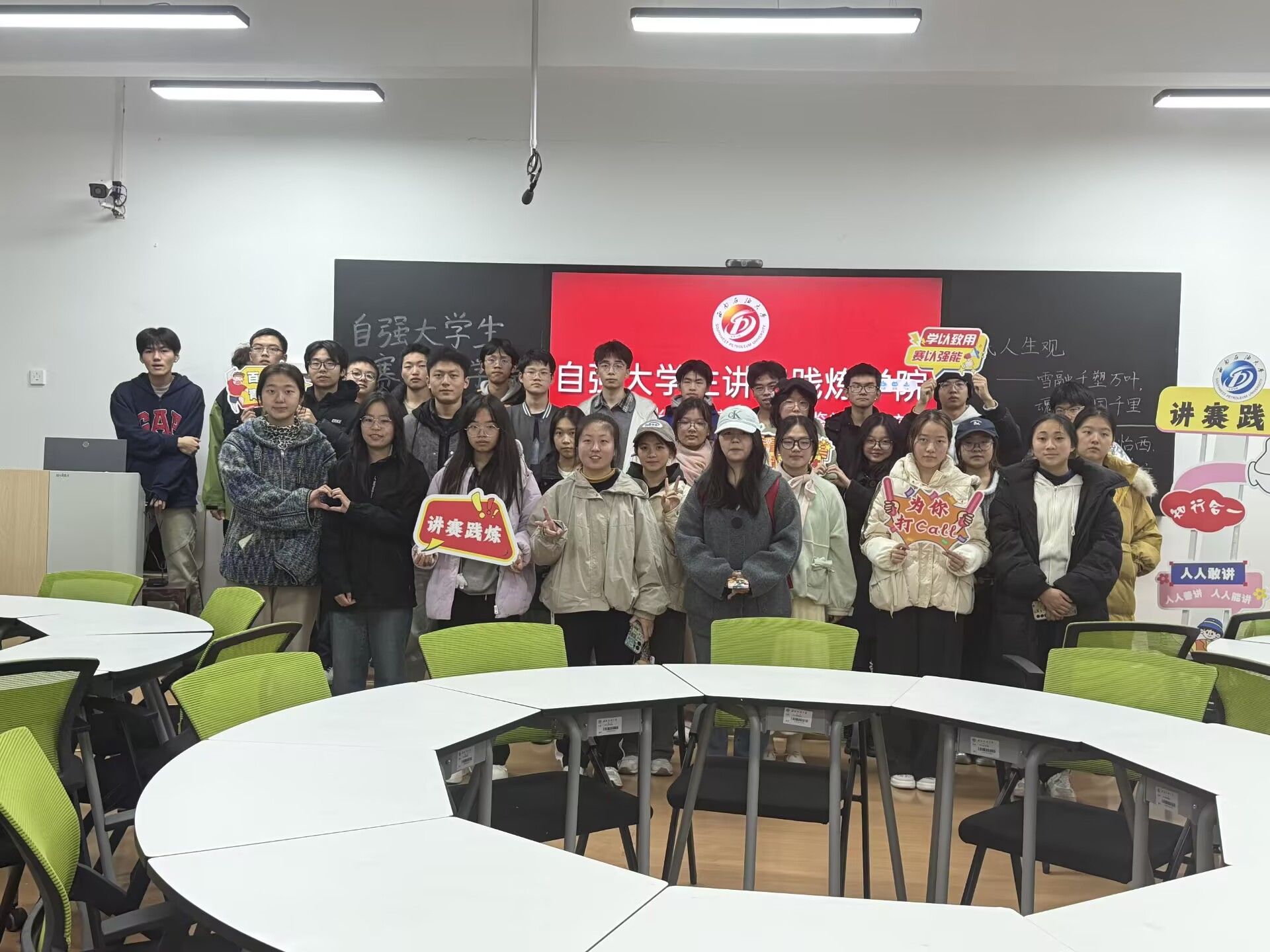 活动伊始,主讲人以《认真的雪》为引,用细腻的歌词剖析爱情中的执着与纯粹,唤起听众对真挚情感的珍视。随后,讲解《动物世界》用犀利的隐喻手法,将人性欲望比作“弱肉强食的丛林”,引导大家反思现代社会中保持本心的重要性。谈及《骆驼》时,主讲人结合“骆驼”意象,阐释“孤独与坚持”的人生态度:即使“风沙吹进眼里”,也要朝着心中绿洲跋涉,这份韧性正是当代青年面对困境时最珍贵的品格。而《违背的青春》则以“我还没年轻够,就老了”的呐喊直击人心,鼓励在场学生勇敢打破“被安排的剧本”,在“不被看好的青春里”书写自我,让理想在试错中生长。活动最后,全场齐唱《动物世界》,在激昂旋律中传递出“不妥协、不将就”的青春宣言。活动现场气氛热烈,观众踊跃分享感悟。