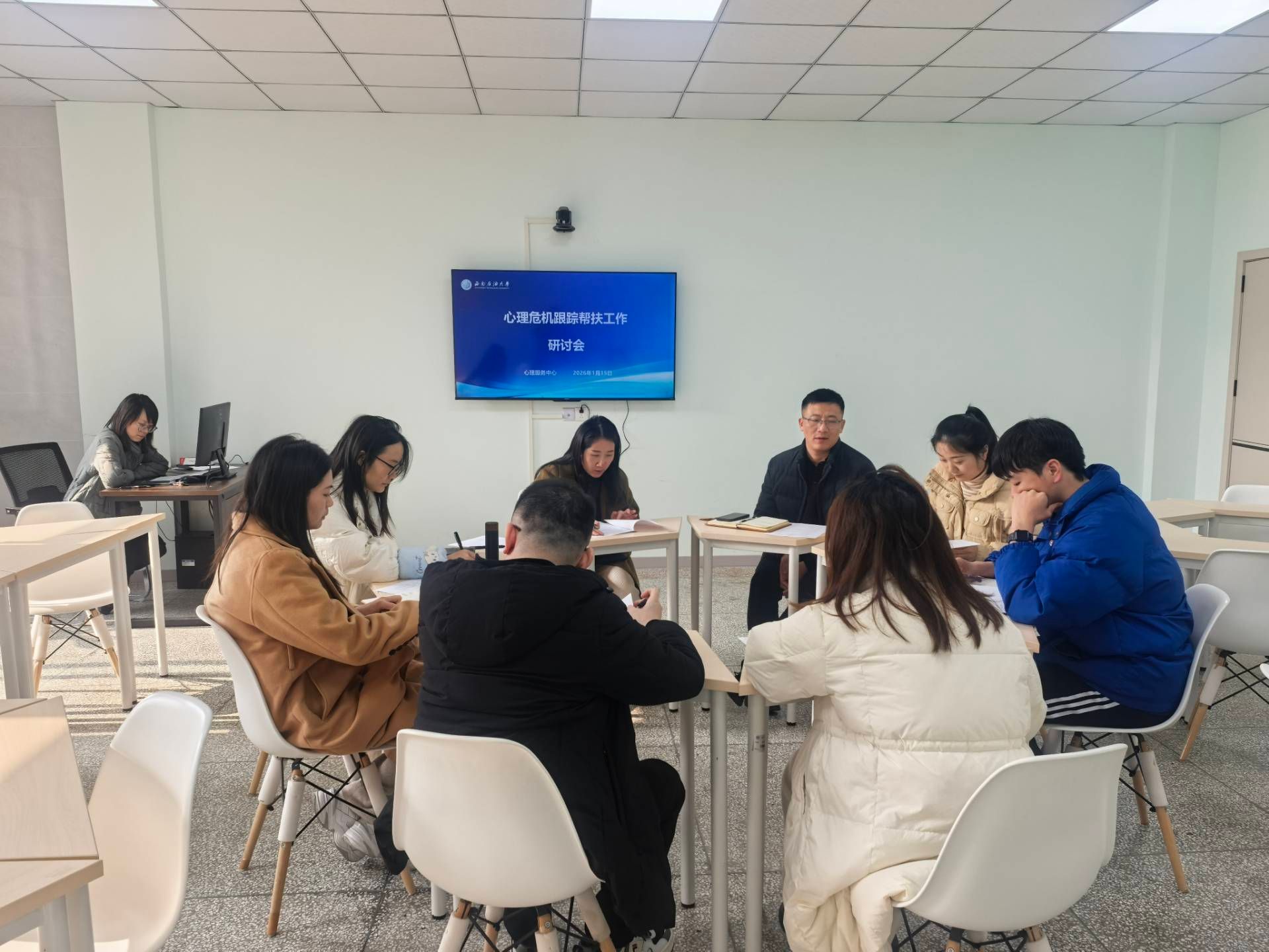 为深入贯彻落实立德树人根本任务,进一步加强和改进学生心理健康教育工作,提升心理危机预防与干预工作的科学性与实效性,2026年1月15日下午,心理服务中心在209团体辅导室组织召开专题研讨会,聚焦于优化学生心理危机跟踪帮扶工作方案。学生发展部(团委)副部长秦明旺、专职心理健康教师以及各学院心理辅导员参加了本次会议。