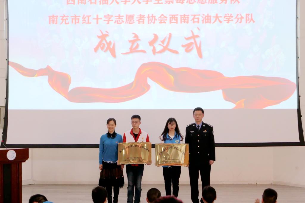 南充市红十字志愿者协会为南充市红十字协会西南石油大学分队授牌