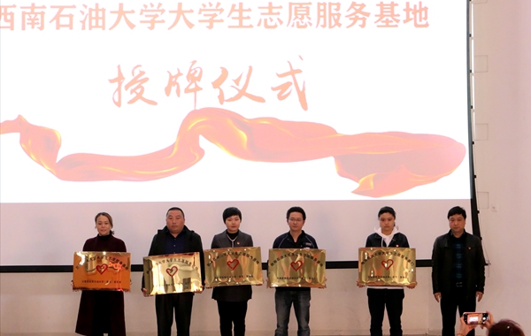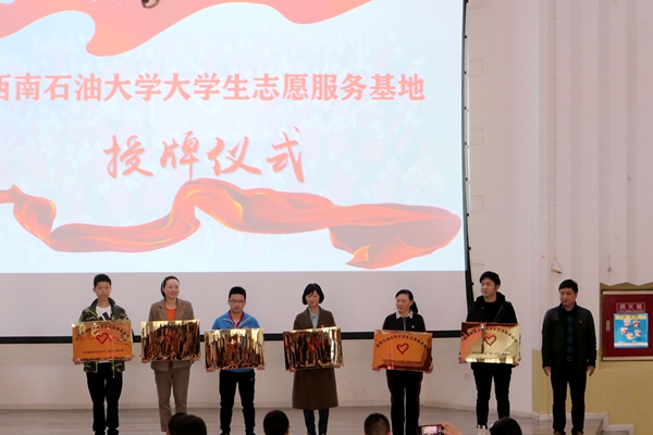 闭幕式上,郝江岭向罗瑞卿故居纪念馆、南充市心理行为康复中心等11家单位授予“西南石油大学大学生志愿服务基地”牌。南充市禁毒委员会、市公安局禁毒支队向我校大学生禁毒志愿服务队授牌,南充市红十字志愿者协会向南充市红十字志愿者协会西南石油大学分队授牌。