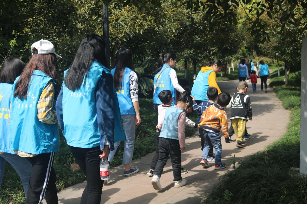 志愿者们在抵达目的地并与康复中心的老师沟通后,带领小朋友们步行到达公园。志愿者们以一对一的方式陪着小朋友们玩游戏,尝试着与小朋友们深入交流,打开他们的封闭的内心。小朋友们在志愿者的带领下,捡起公园里的树叶和纸屑扔进垃圾桶里,每个小朋友都得到了一颗糖果作为奖励。志愿者们用心陪伴着小朋友们,用爱与小朋友们交流。在活动过程中小朋友们脸上始终洋溢着幸福的笑容,活动结束时,小朋友们拥抱志愿者表示感谢。