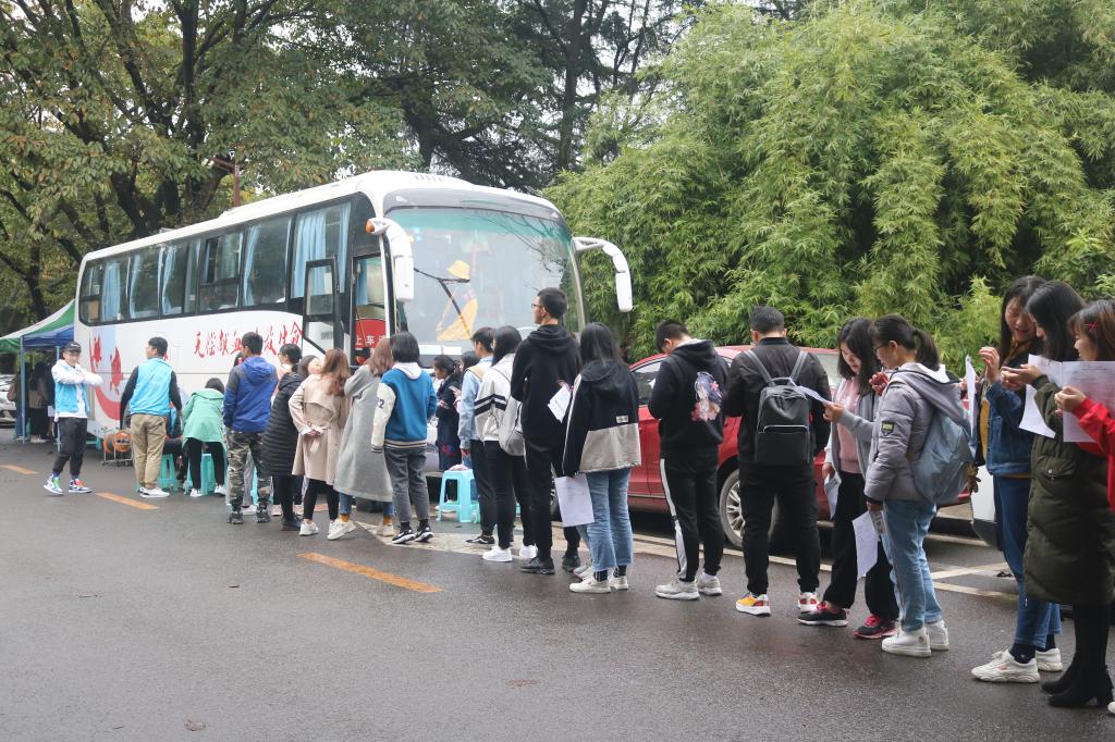 志愿者们排队献血