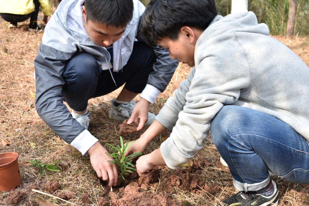 活动开始后,同学们纷纷参与其中。在工作人员的组织和引导下,参与人员利用锄头、铁锹等工具在山坡上挖土坑,随后进行了植树、浇水等活动。此次活动持续了两个小时,并获得了周围其他高校群体和其余社会群众的广泛认可。活动最后,所有参加活动的人员都进行了合影留恋。