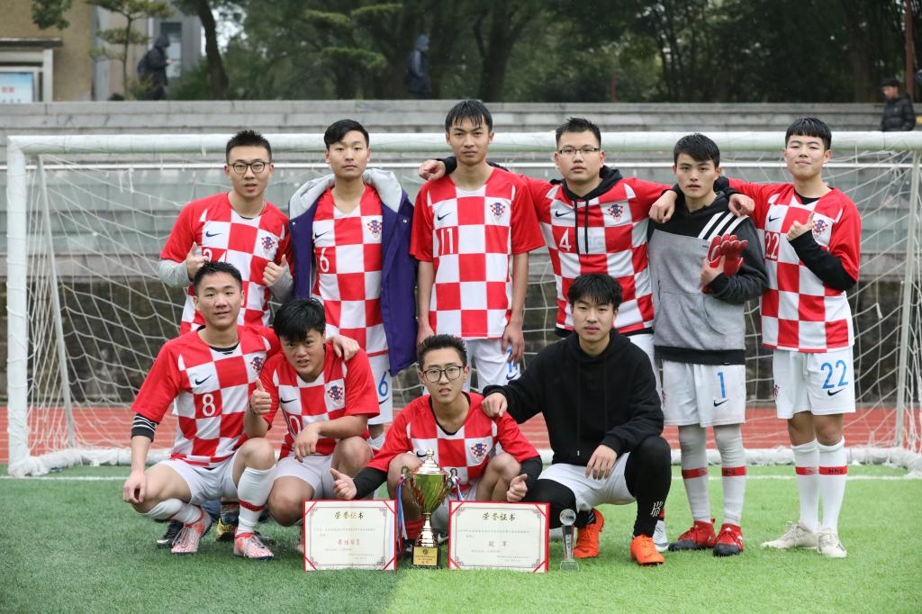 决赛中,机械电子工程专业2017级与焊接技术与工程专业2016级进行了激烈比拼,覃鸿飞为比赛开球。双方运动员在绿茵场上积极拼抢,竭力防守,展现了高昂的斗志。随着比赛时间逐渐推进,运动健儿们都愈发勇猛,多次半场传球直指禁区完成有威胁射门。常规时间战罢,双方通过默契的配合各攻入一球,战成1:1平。决赛进入紧张的点球大战,双方球员互有进球,最终2017级机械电子工程专业凭借守门员的几次精彩扑救,以微弱的优势取得了本场比赛的胜利,获得本次足球联赛冠军。