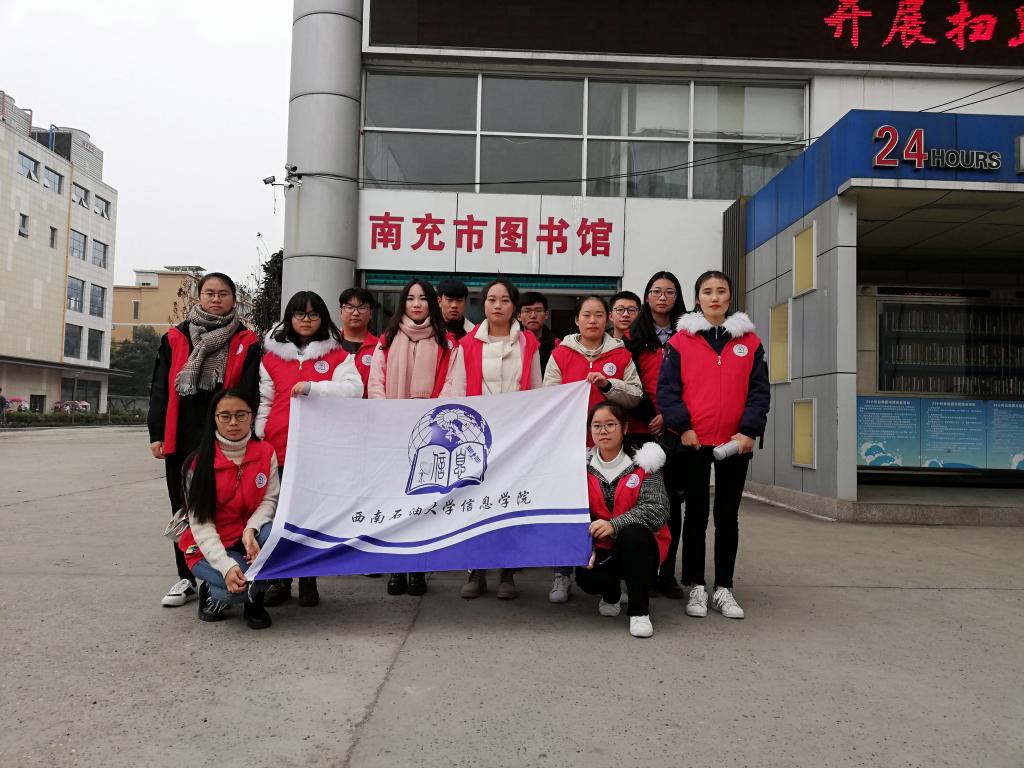 为丰富大学生课余时间,大力弘扬无私奉献的精神,增强同学们服务社会的意识,12月1日下午,信息学院在南充市图书馆开展了“图书馆志愿行”活动。