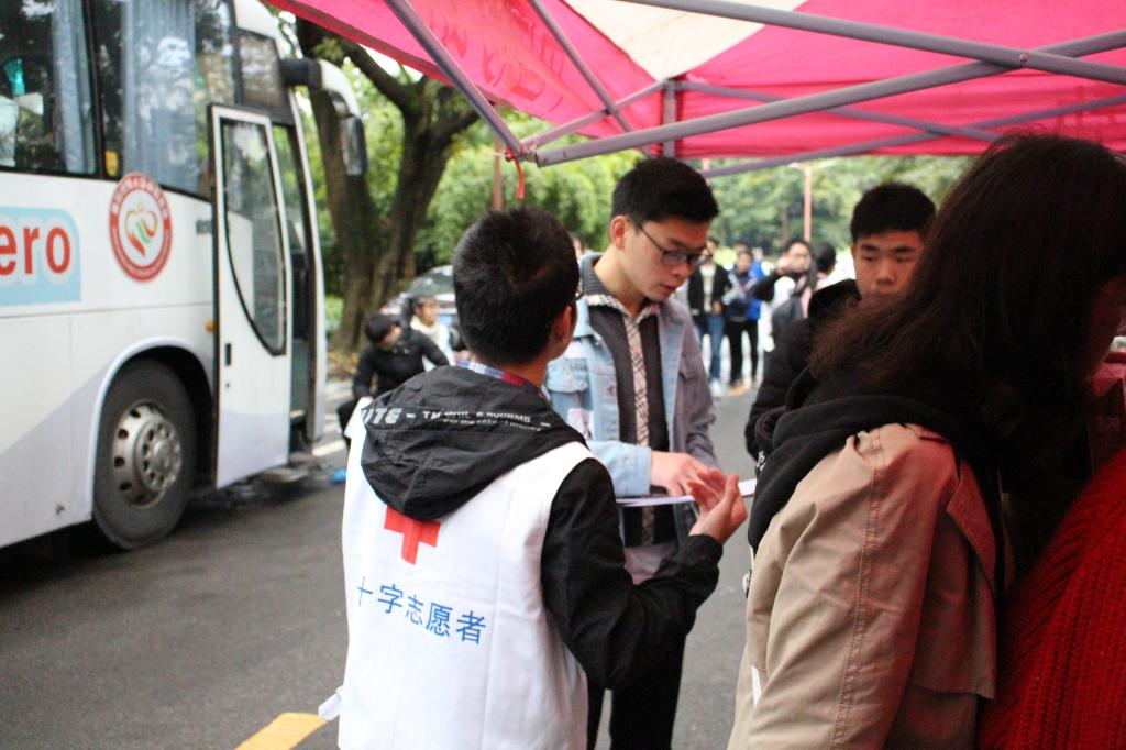 2018年11月18日上午,以“献出热血,挽救生命”为主题的无偿献血公益活动于校区外语村对面顺利开展。此次活动由红协志愿者协会承办,面向校区全体教职员工以及学生。