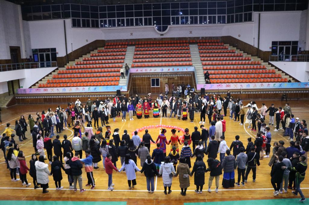 晚会结束后,现场观众和嘉宾还在体育馆一起欢跳彝族舞。首先是欢跳达体舞,来自不同民族的老师和同学在彝族同学的带领下手拉着手站成几个圈,跟随着音乐的节奏摆动起来,齐跳达体舞,感受其过年的气氛。现场师生还一起跳起了彝族舞蹈阿诗且和蹦迪舞32步,现场气氛再次达到高潮。