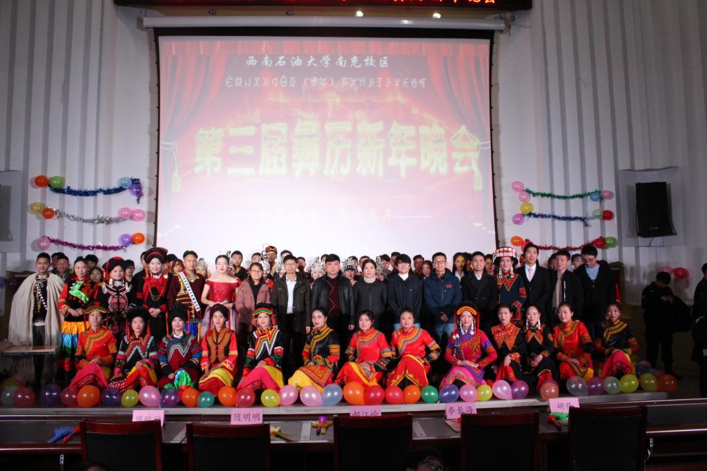 11月17日晚,南充校区团委社团联合会民族艺术协会举办了第三届彝历新年晚会。学生工作部(团委)部长郝江岭、综合素质教育办公室副主任随明明、学生教育管理科副科长李长海、各学院辅导员和200余名学生观看了晚会。