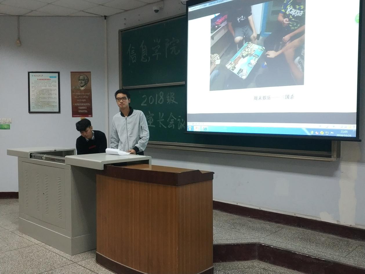 为了加强对学生寝室的管理和文化建设,信息学院学生会生活与自律部于10月28日晚在第四教学楼开展了2018级寝室长会议。参加本次会议的有信息学院学生会负责人、2018级全体寝室长以及三个年级的生活委员,本次会议由信息学院学生工作办公副主任胡丹组织策划。