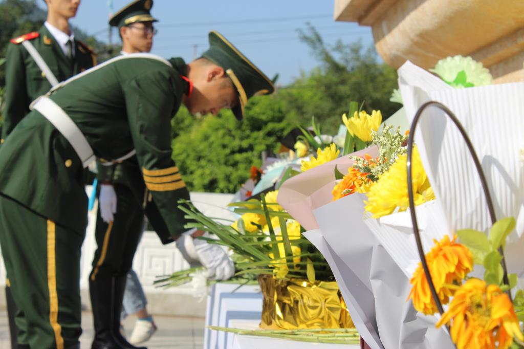 活动伊始,国旗护卫队队员身穿军装,青年志愿者穿着蓝色的志愿服,举着队旗,排着整齐的队伍,表情庄重地来到烈士陵园。活动期间,国旗护卫队副队长周桐、张若曦和青志协周显奇作为代表分别发言。每位成员都为烈士献花,擦拭墓碑,以表达我们对革命先烈的崇敬之情。同学们面向烈士碑默哀,碑前雅雀无声,一个个都沉浸在对先烈的怀念之中。