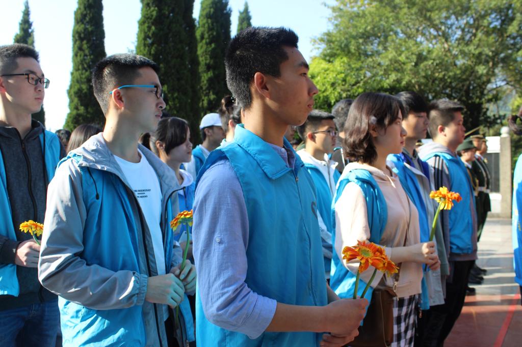 青年志愿者协会代表详细地介绍了本次活动开展的背景,表达了对革命先烈崇高的敬意,积极倡导广大青年学生为祖国的繁荣富强贡献出自己的一份力量。国旗护卫队为先烈们送上花篮后,志愿者们依次上前献花。随后,志愿者们来到墓碑前进行清扫工作,并为烈士们默哀。活动最后,大家前往革命烈士事迹陈列馆参观,并在陈列馆前合影留念。
