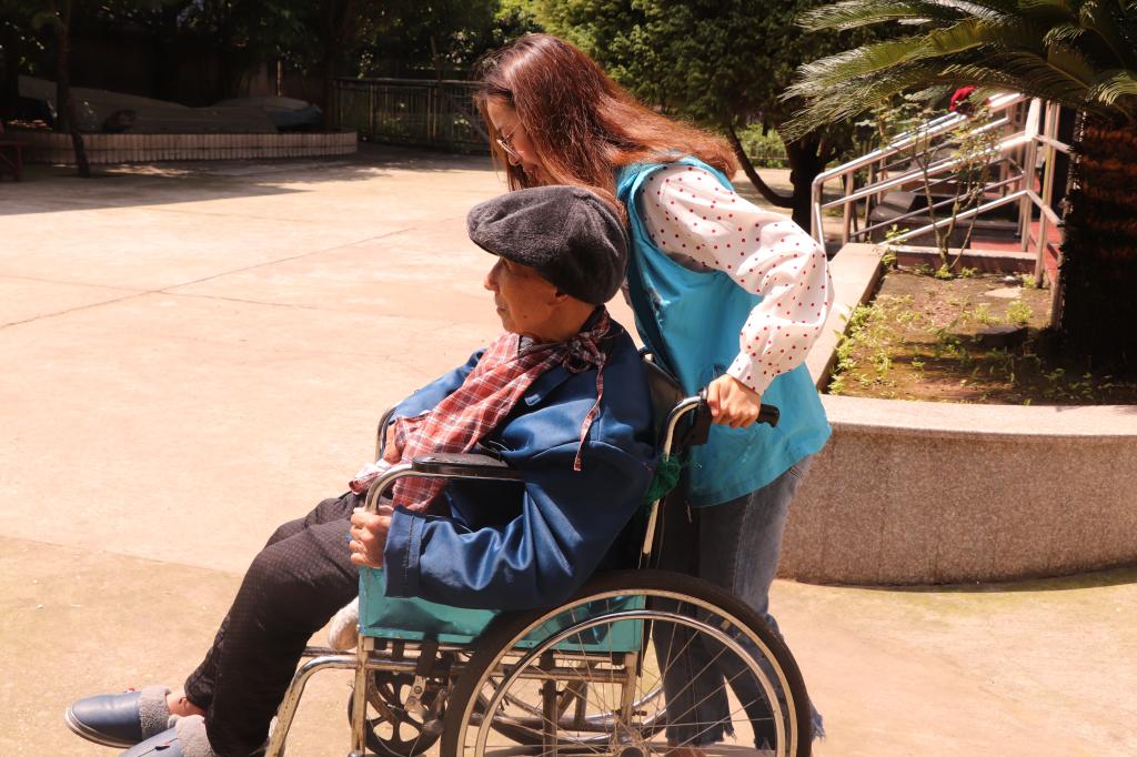 到达敬老院后,志愿者们问候各位老人近来的身体状况,表达对他们的关怀。下午,阳光正好,志愿者们将老人搀扶到院中,陪着他们聊聊日常生活,倾听他们希望和家人欢聚一堂的愿望。一位老奶奶请志愿者为她拍下照片,以此来纪念这个愉快的下午。临别之际,一位老人现场编唱歌曲,以此表达对本次志愿活动的感谢。活动最后,全体志愿者与老人合影留念。