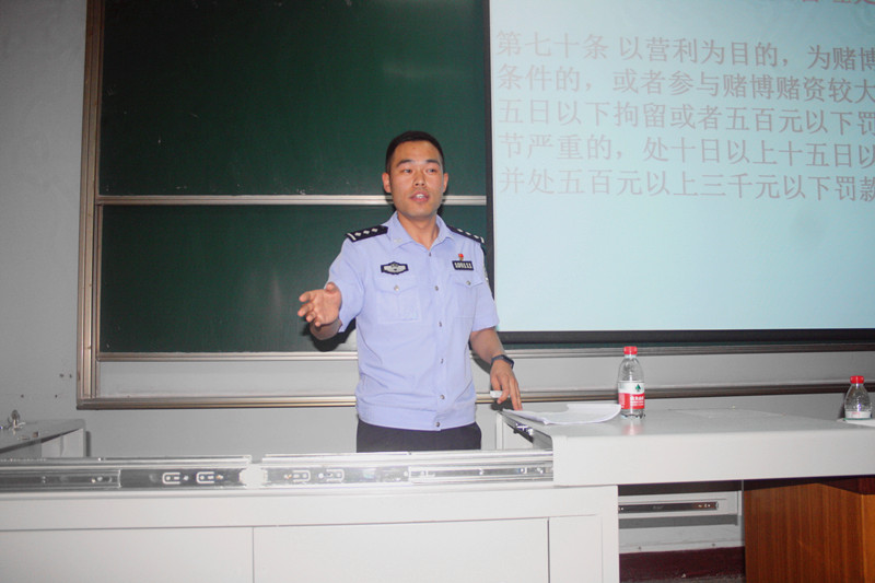 为进一步做好校园安全教育工作,增强大学生安全防范意识与自我保护能力,营造和谐、稳定的校园环境,4月25日下午,保卫部、学生工作部(团委)特邀南充市顺庆区石油南路派出所副所长庄旭在第四教学楼4416教室作了题为“大学生人身及财产安全知识”安全教育知识讲座。校区保卫部治安科科长蒲和平,学生工作部(团委)学生教育管理科副科李长海和200余名学生参加讲座。
