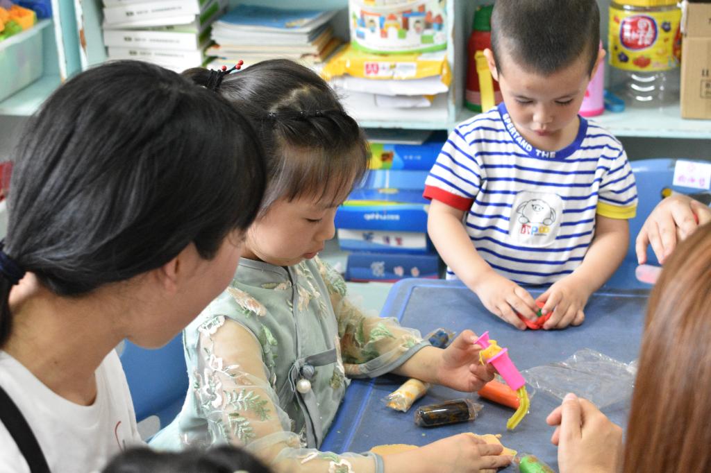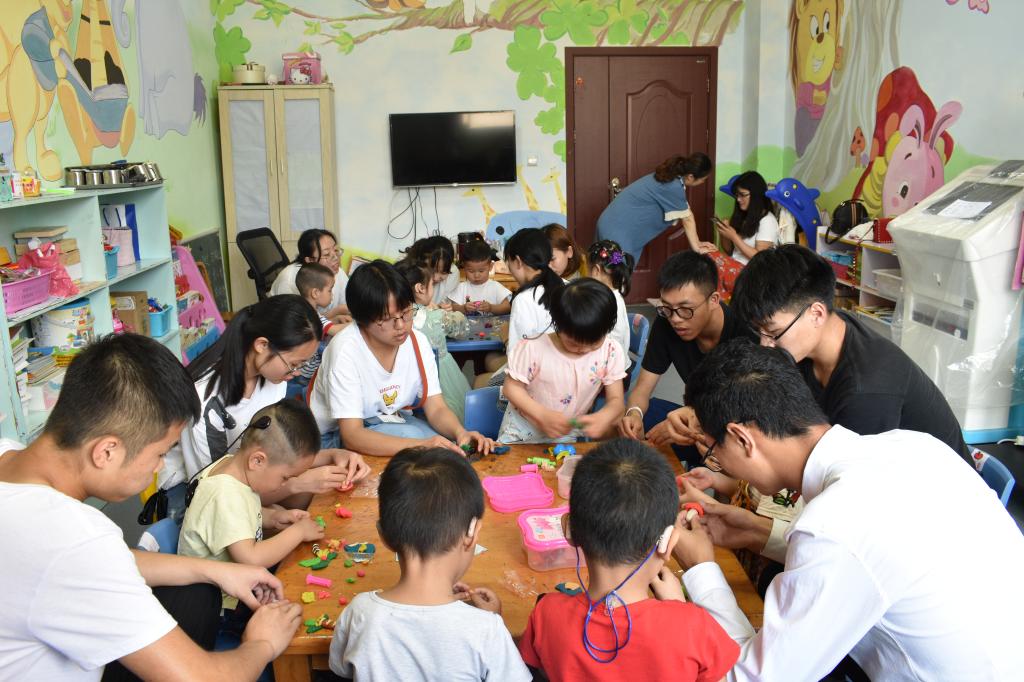 由于室外温度较高,志愿者们在到达目的地后,与当地老师进行沟通交流,最终决定在室内采取一对一的形式陪伴小朋友们做游戏。五颜六色的橡皮泥像是被志愿者和小朋友们赋予了生命,呈现出它们各自的光彩,同小朋友一起绽放光芒。花朵、乌龟、星星……一个个橡皮泥也有自己使命,它们的使命是像花朵、星星一样陪伴小朋友们,而志愿者的使命则是关爱陪伴这群可爱的孩子们,和他们一起沉浸于童话王国,用爱与小朋友们交流,让他们幸福快乐的成长。