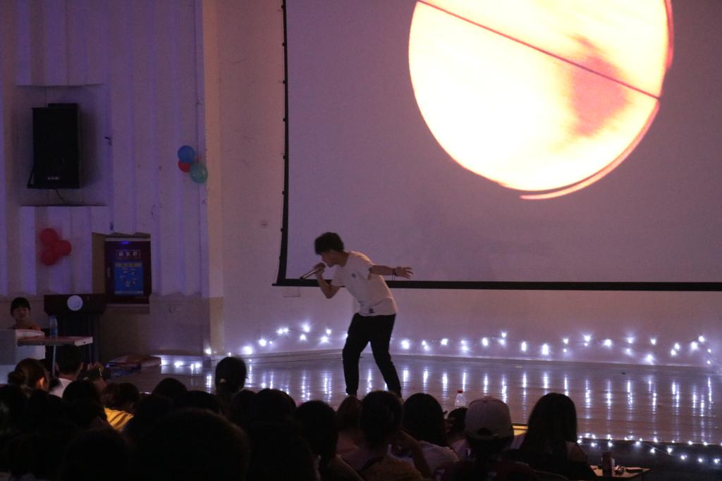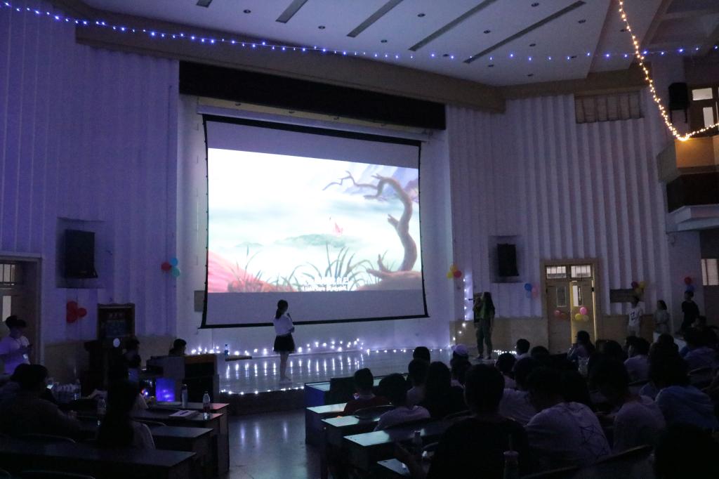 活动很快拉开了帷幕。第一个节目是由协会理事于志航带来的歌曲《You Raise Me Up》。之后是电影片段“弹指风云”的配音,配音演员苟俊华、王禹顺、赵艺琳为我们展示了精彩的英语配音表演。第三个节目是歌曲《Yellow》,而演唱者王森用他美妙的歌声赢得了观众的认可。现场不少的观众都打开了手机闪光灯为他呐喊。接下来是互动环节"谁是卧底",活动过程中妙趣横生,参与人员需要用英语来描绘自己的身份,这无疑增加了游戏的挑战性与趣味性,同时也带动了现场的气氛。互动环节之后,配音表演《小黄人》与《狮子王》为大家上演精彩的视听盛宴。随后在歌曲表演《我们的歌》《earth song》《love yourself》回荡的歌声中,活动圆满结束。