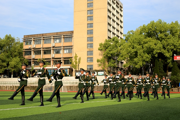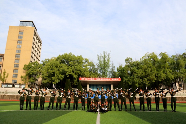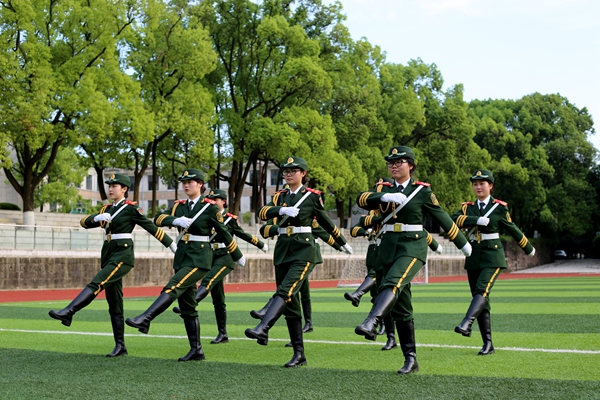 国旗护卫队何源说:“在我们作为国旗护卫队新兵的时候,每周六会训练一整天。而这学期周六的时间被一分为二了,上午依旧是严格的训练时间,下午就组织外出团建,劳逸结合。这不仅有助于训练,还能增强大家的团队意识。”