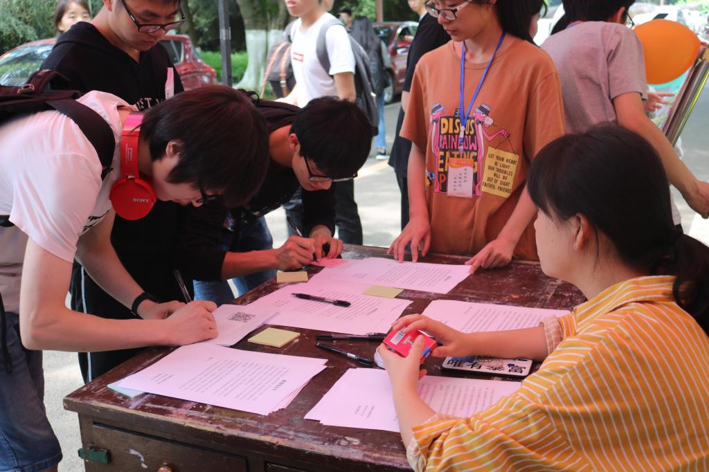 为使同学们养成健康的生活习惯,共同构建无烟校园环境,5月31日,校区团委社团联合会生命绿舟协会于外语村对面举办了“熄灭香烟,点燃文明”活动,全校区共100余名同学参与其中。