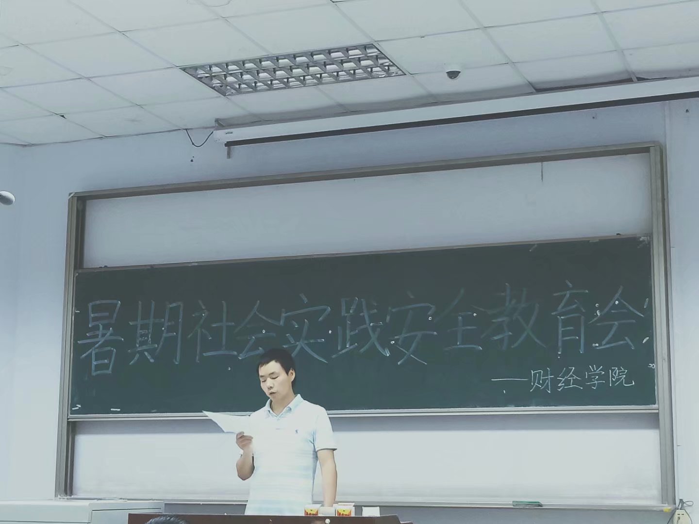 为深化同学们对暑期社会实践的认知,加强实践期间的安全保障,6月26日晚,财经学院开展了暑期社会实践安全教育会。财经学院团总支副书记、学生工作办公室副主任杨智光,辅导员谢曜励和全体参与实践学生参加本次教育会。