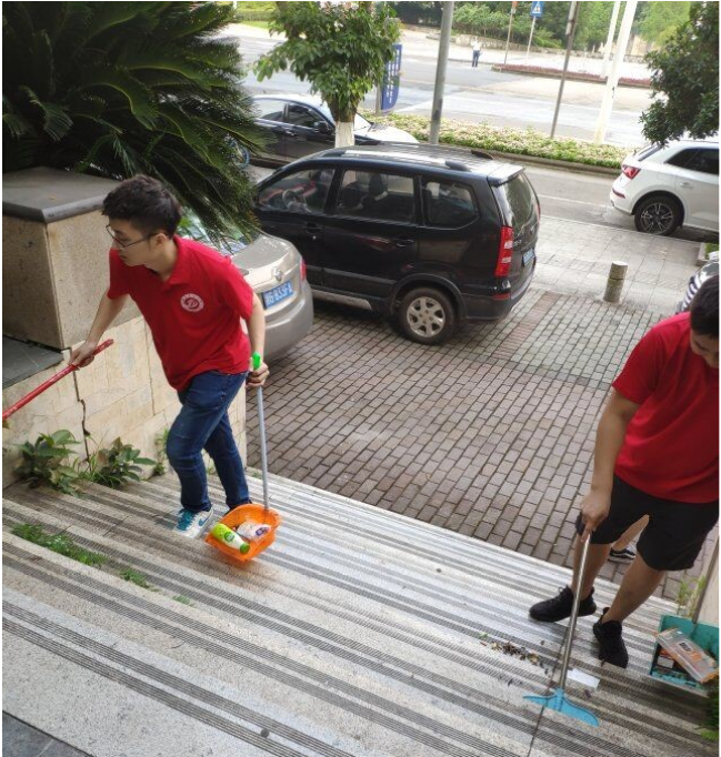 随后的实践活动中,实践队员从早上七点半开始,在环都路周边街道和环卫工人一起打扫卫生。在这个过程中,队员们积极参与劳动,都得较大的锻炼。