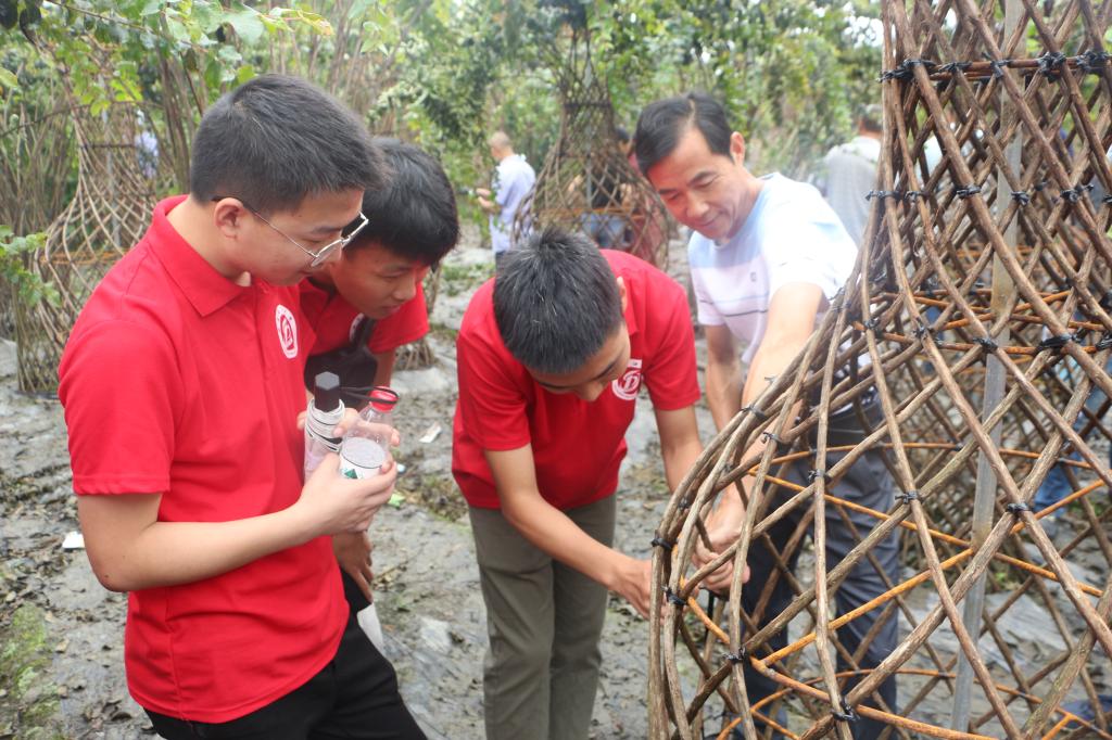 首先,花木编艺公园的负责人徐主任热情地接待了实践队的一行人,随后徐主任向大家介绍了花木编艺大师漆康林。漆大师带领实践队员们参观了植物编艺展示园区,每走到一处,他都向大家介绍每个编艺品的设计理念并且给队员们普及了一些花木编艺的基本知识。参观完编艺公园之后,实践队员跟着漆大师来到了花木培育基地学习如何编制藤艺作品。在漆大师和公园工作人员的指导下,实践队员们也纷纷上手体验了一把编织藤艺作品的乐趣。随后实践队员在工作人员的带领下参观了植物嫁接的过程,工作人员耐心细致地向队员们讲解了嫁接过程中需要注意的地方。最后,漆大师邀请了实践队到他的家中做客,借此机会,实践队员对漆大师进行了一个短暂的采访。采访过后,实践队员们与漆大师一起合影留恋。到此,植物编艺公园探访之旅圆满结束。