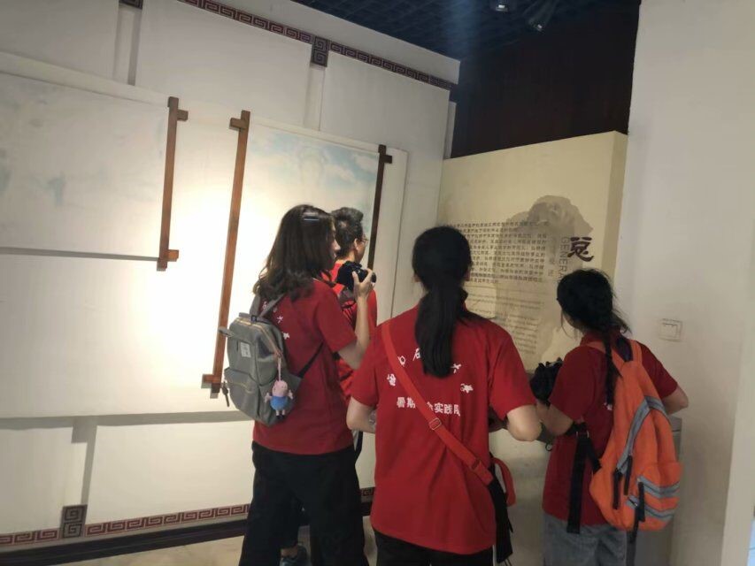 7月10日下午,团队来到北关展馆,参观了机仙会展馆。展厅里陈列着一张张编制好的夏布,每一根细麻都整齐的交织在一起。夏布的质感略偏硬,除了制作衣物之外,也可制作成其他工艺品。在展馆中,还有由夏布制作的折扇,每一面折扇上都有一幅清逸秀丽的水墨画,与夏布所拥有的特殊质感和色彩融为一体。这也启发了实践队的同学们思考如何创新性的改造夏布,拓宽它的销路。