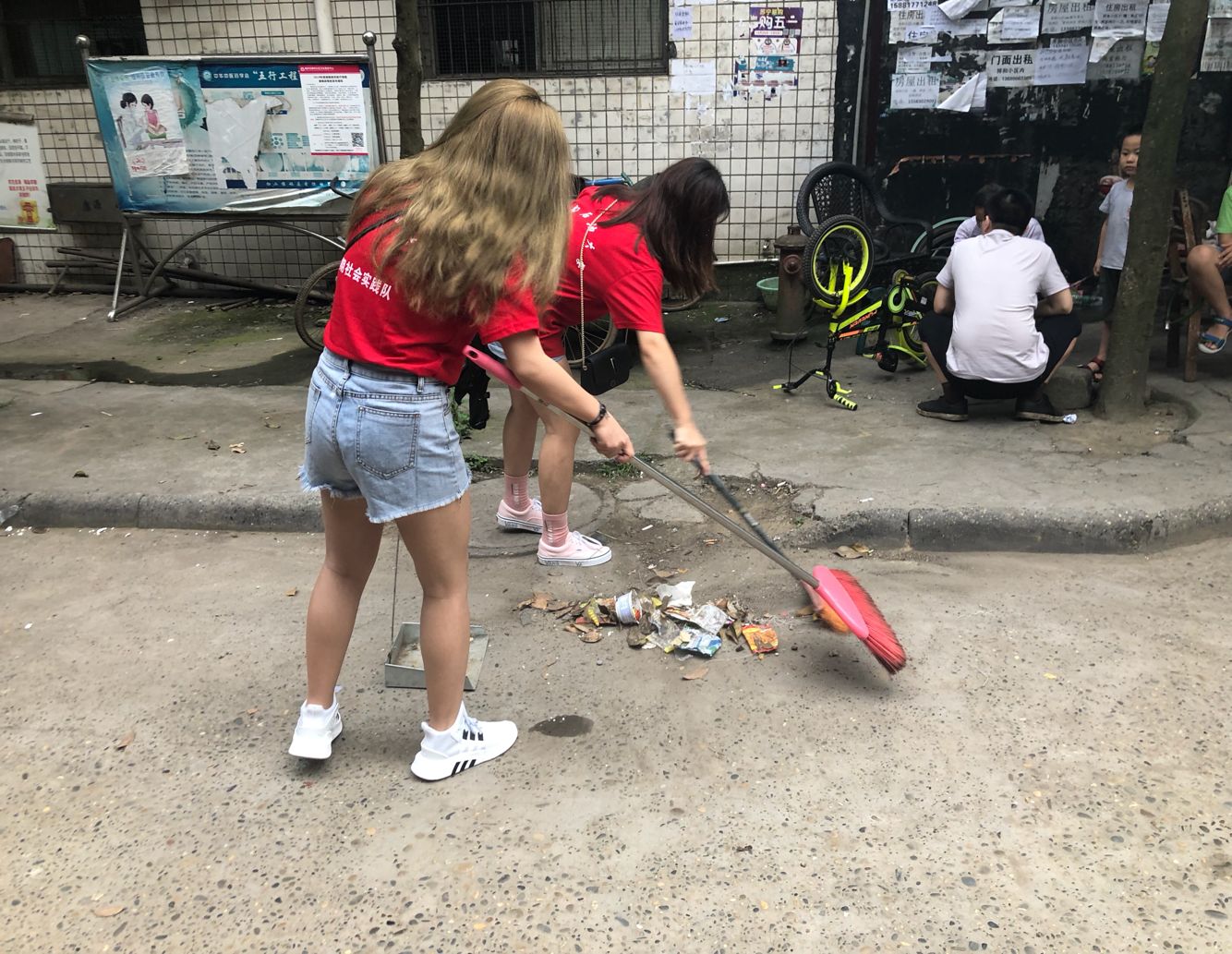 实践队员清扫垃圾