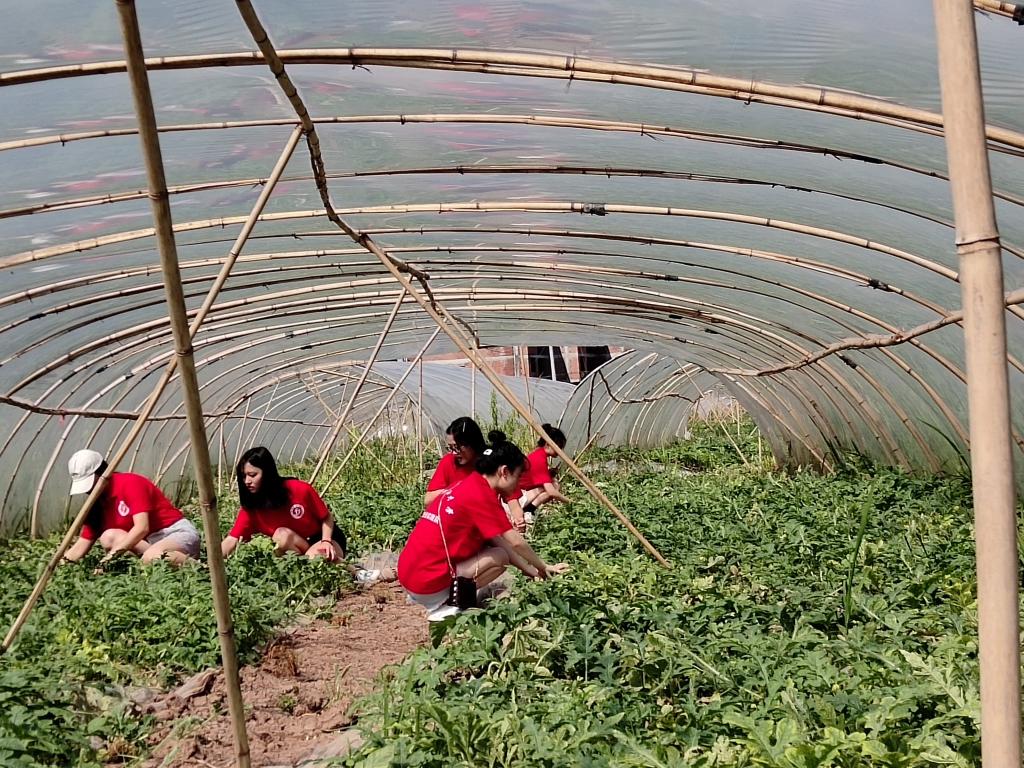 实践队员进入瓜棚采摘