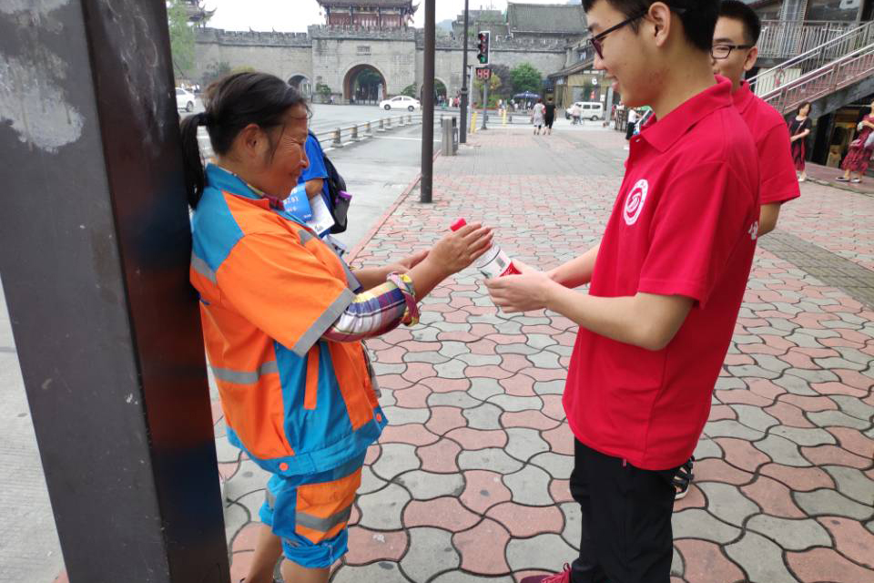 为环卫工人送水