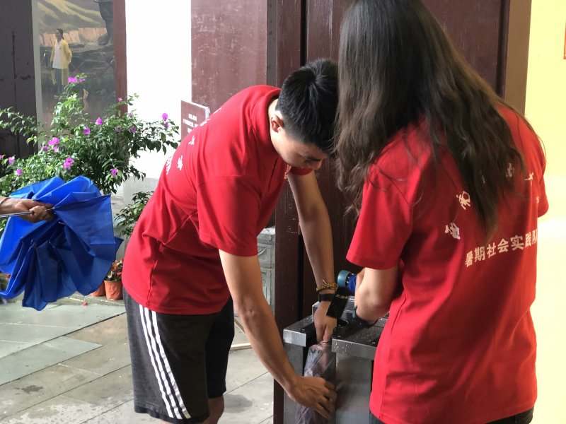 来到朱德故居纪念馆,工作人员热情地为实践队员们讲解了志愿工作的主要任务和注意事项。实践队员们各司其职,以饱满的精神状态投入到志愿服务工作中。在纪念馆入口处,实践队员热情地引导游客,告诉他们雨伞的携带方法及物品的寄存方法。在纪念馆内,实践队员在油画、仿真模型等物品的护栏外维持秩序,防止文物受到伤害。他们心神专注,不错过任何一个可能会使文物受到损伤的因素,尽心尽力地保护文物。在纪念馆出口处,实践队员还积极为游客指引游览线路,给游客带去了方便。实践队员的热情服务受到了游客的一致好评和点赞。