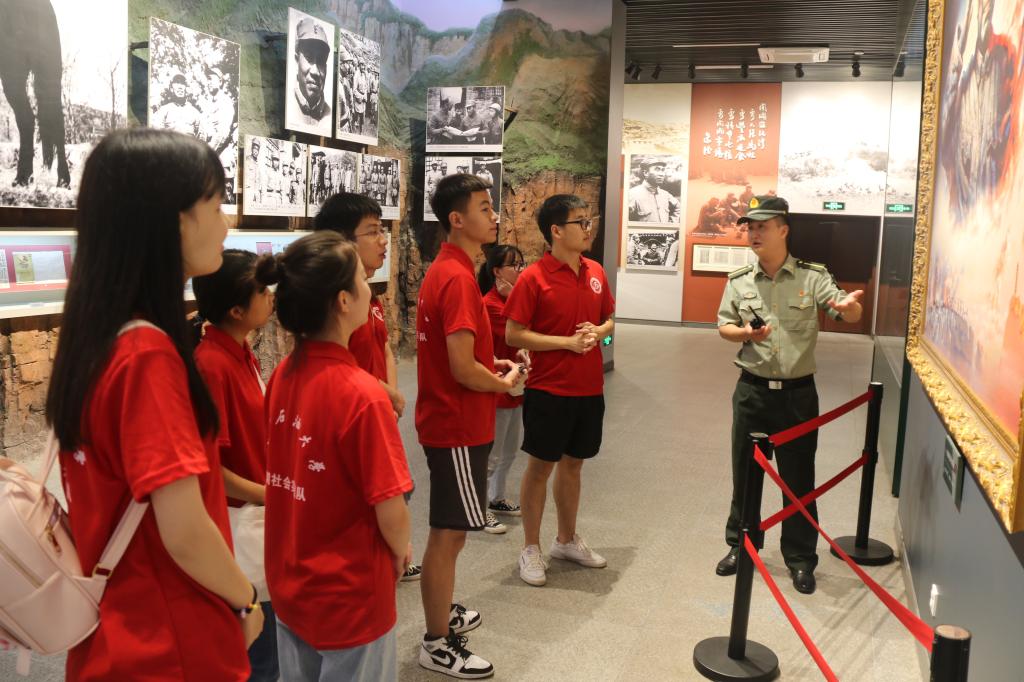 实践队员认真听取纪念馆工作人员讲解油画等文化保护注意事项