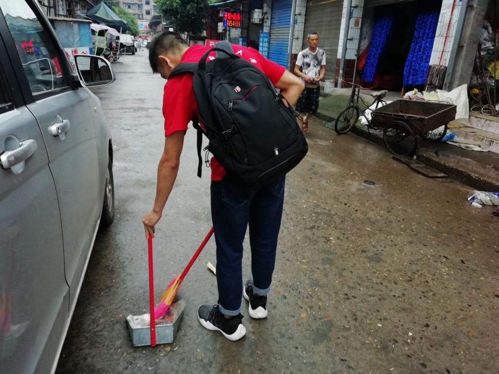 在活动期间,实践队首先通过问卷调查及走访调研的方式了解到了当地居民的环保意识,随后结合调查的结果进行了有针对性的环保知识宣传。在宣传过程中,当地的居民很热情的配合实践队的工作。实践队还前往龙门古镇内进行义务劳动,在当地环保人员的指导下,队员们认真的打扫了街道的每一个角落。