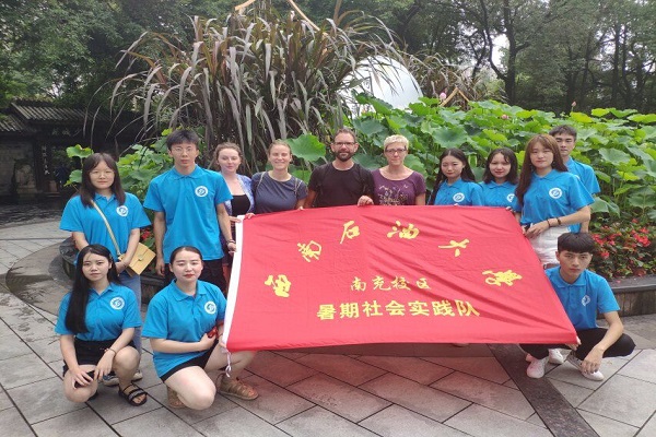 实践队一行来到了成都市金牛区人民公园,对游客们进行了问卷调查活动。通过访问调查,实践队了解了游客的环保认识程度,随后结合调查的结果进行了有针对性的环保知识宣传。同时,实践队队员帮助清洁人员清扫了景区中的垃圾,获得了游客们的认可。在实践过程中,实践队采访了外国友人了解到他们对公园环境的基本看法。活动最后,实践队与外国友人合影留念。