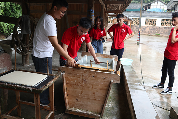 造纸技术是中国的四大发明之一,为进一步了解中国传统造纸技艺,7月19日,工程学院“奔跑吧,夹江”实践队走访了乐山市夹江县金华村状元纸坊。此次走访的目的是了解金华村的造纸文化,体验造纸技术,并对夹江的非物质传统造纸文化进行宣传。