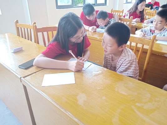 实践队员给孩子们辅导作业