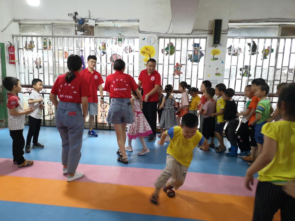 实践队员带领小朋友做游戏