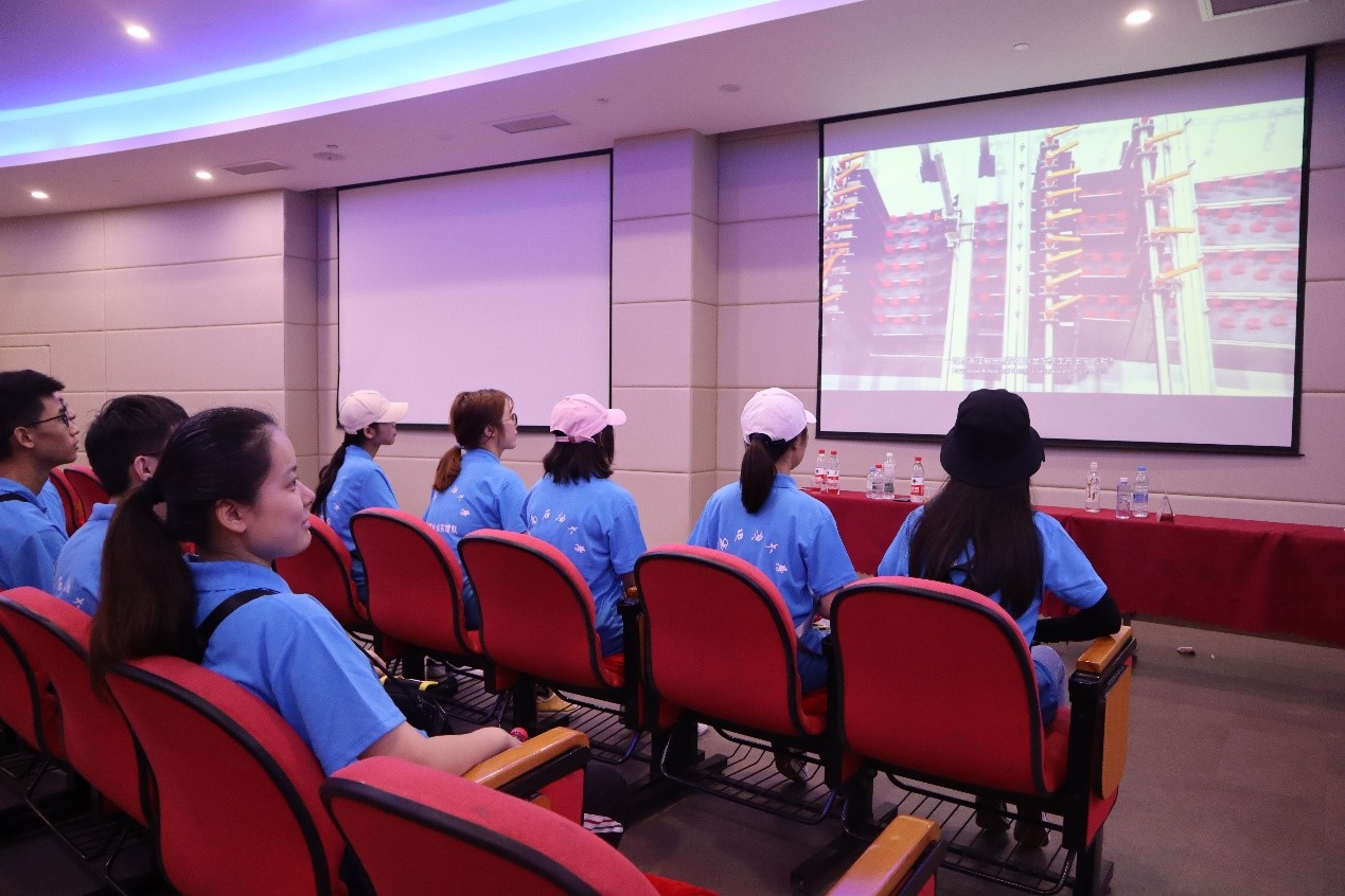 实践队员观看生产基地纪录片