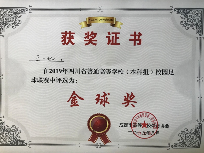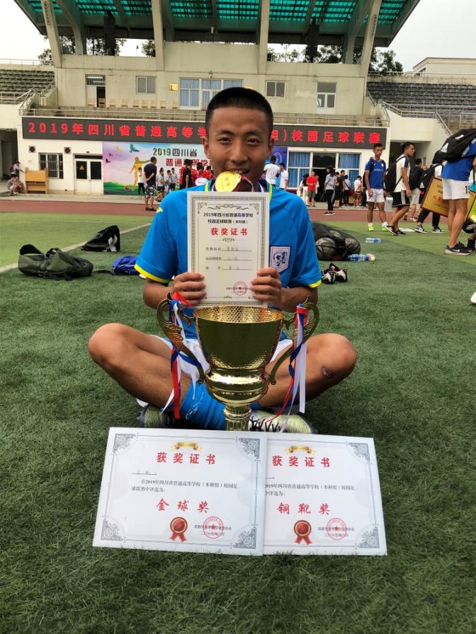 南充校区王一航同学荣获2019年四川省大学生足球联赛金球奖和铜靴奖