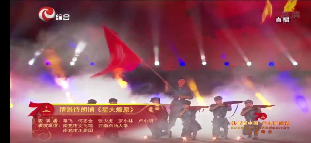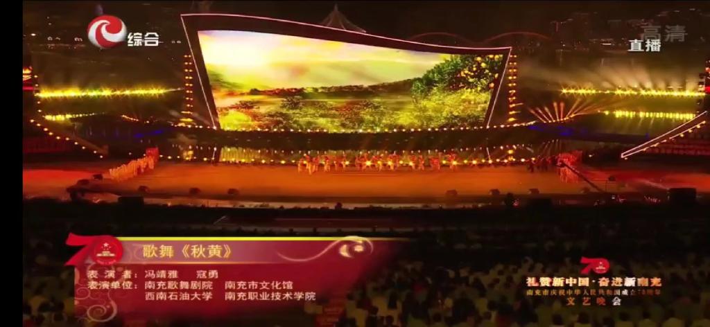 9月29日晚,“礼赞新中国、奋进新南充”南充市庆祝中华人民共和国成立70周年文艺晚会在印象嘉陵江湿地公园举行。校区150名在校学生参演了本次晚会中的6个节目,用自己独特的方式,为新中国70华诞献礼。