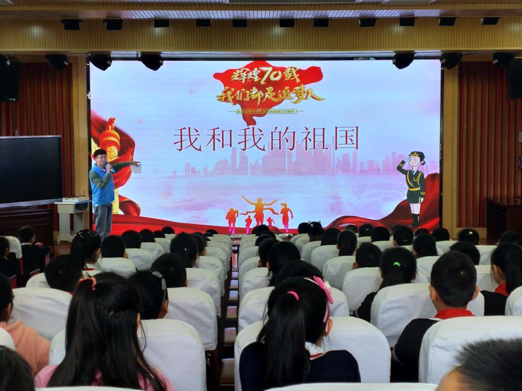 下午三点,活动在城北小学大礼堂准时开展。首先,志愿者们用浅显易懂的语言为大家讲解了国旗和国歌的由来,并根据讲述内容和小朋友们进行了有奖问答的小游戏。小朋友们认真学习并积极地回答了志愿者提出的问题,和志愿者进行了有趣的交流和互动,最终拿到了心仪的小礼品。活动最后,小朋友们上台分享了自己的理想与愿望,用稚嫩的语言表达了他们立志报效祖国的决心、表达了他们对祖国的赞美和热爱。